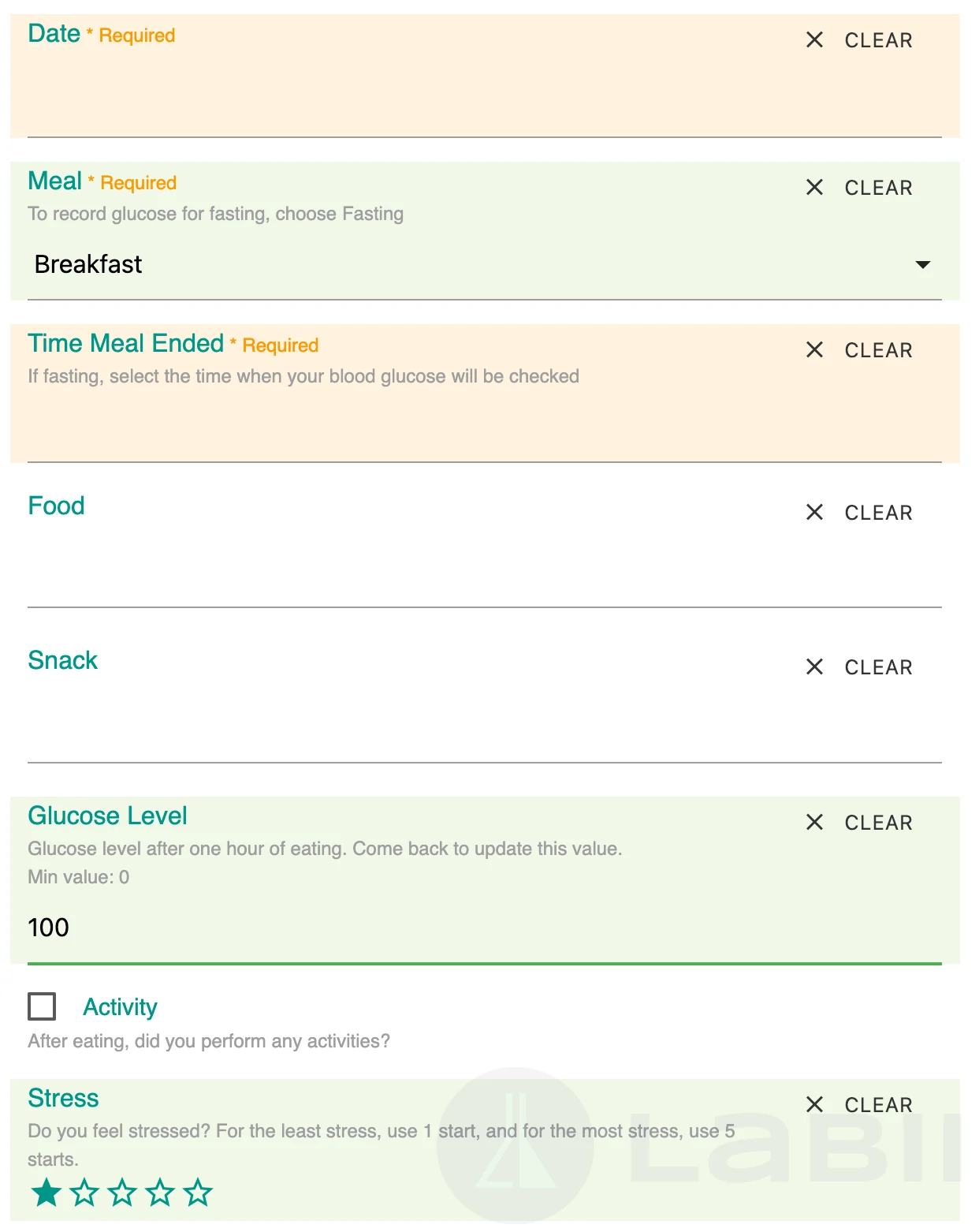 Labii creates glucose records automatically for fasting, breakfast, lunch, and dinner each day according to an automatic workflow.