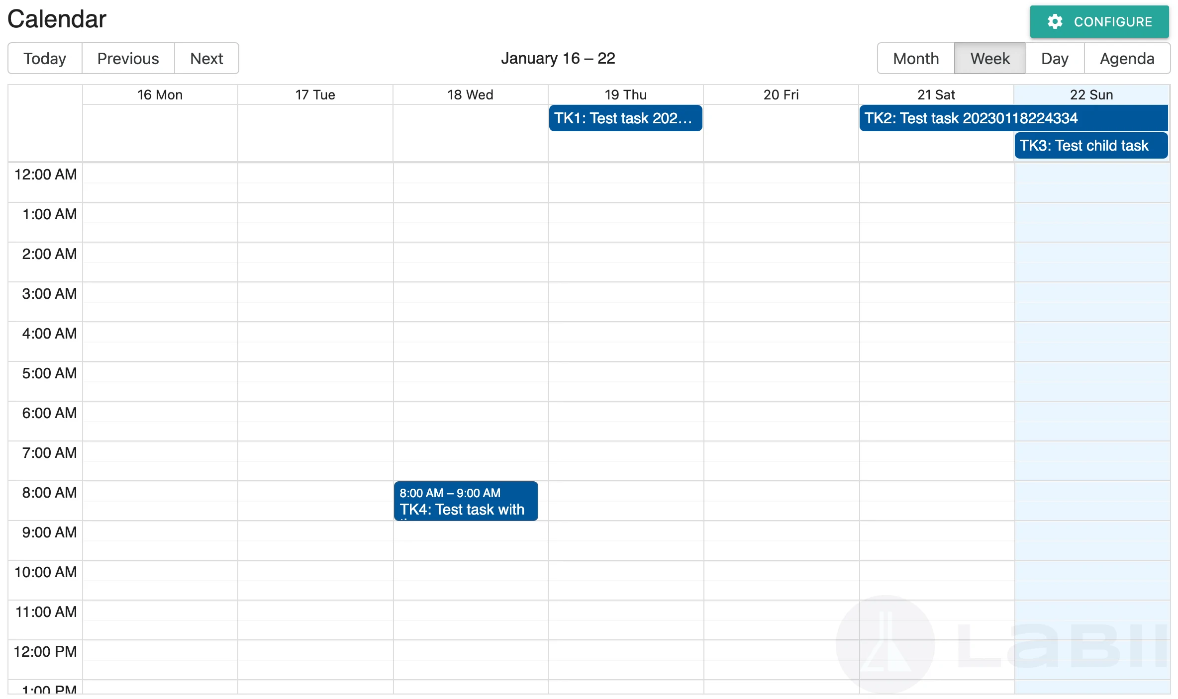 Labii's calendar view is designed to help users manage their schedule and meet deadlines by displaying all their tasks on a calendar.