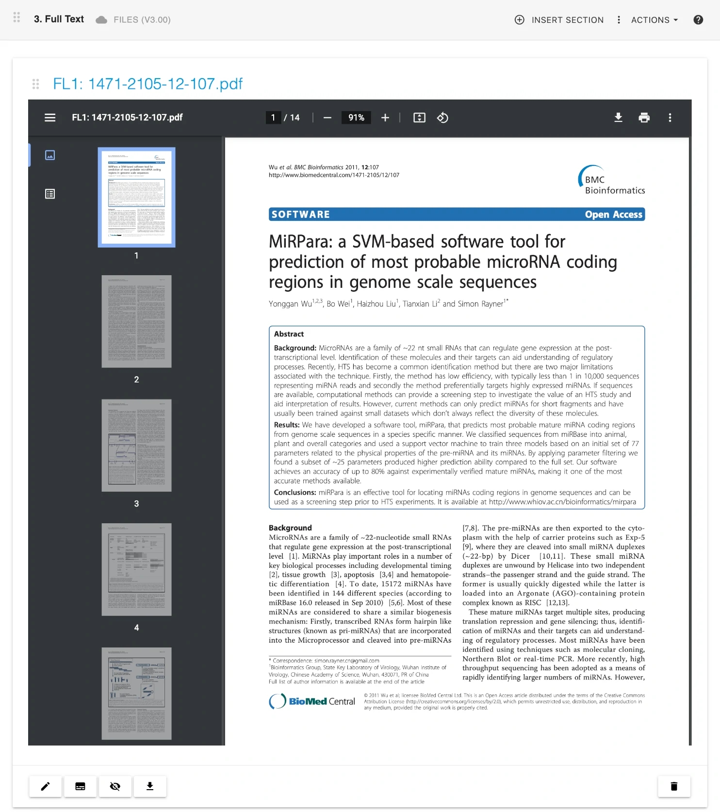 Researchers can attach full-text documents to their articles using Labii's Files widget.