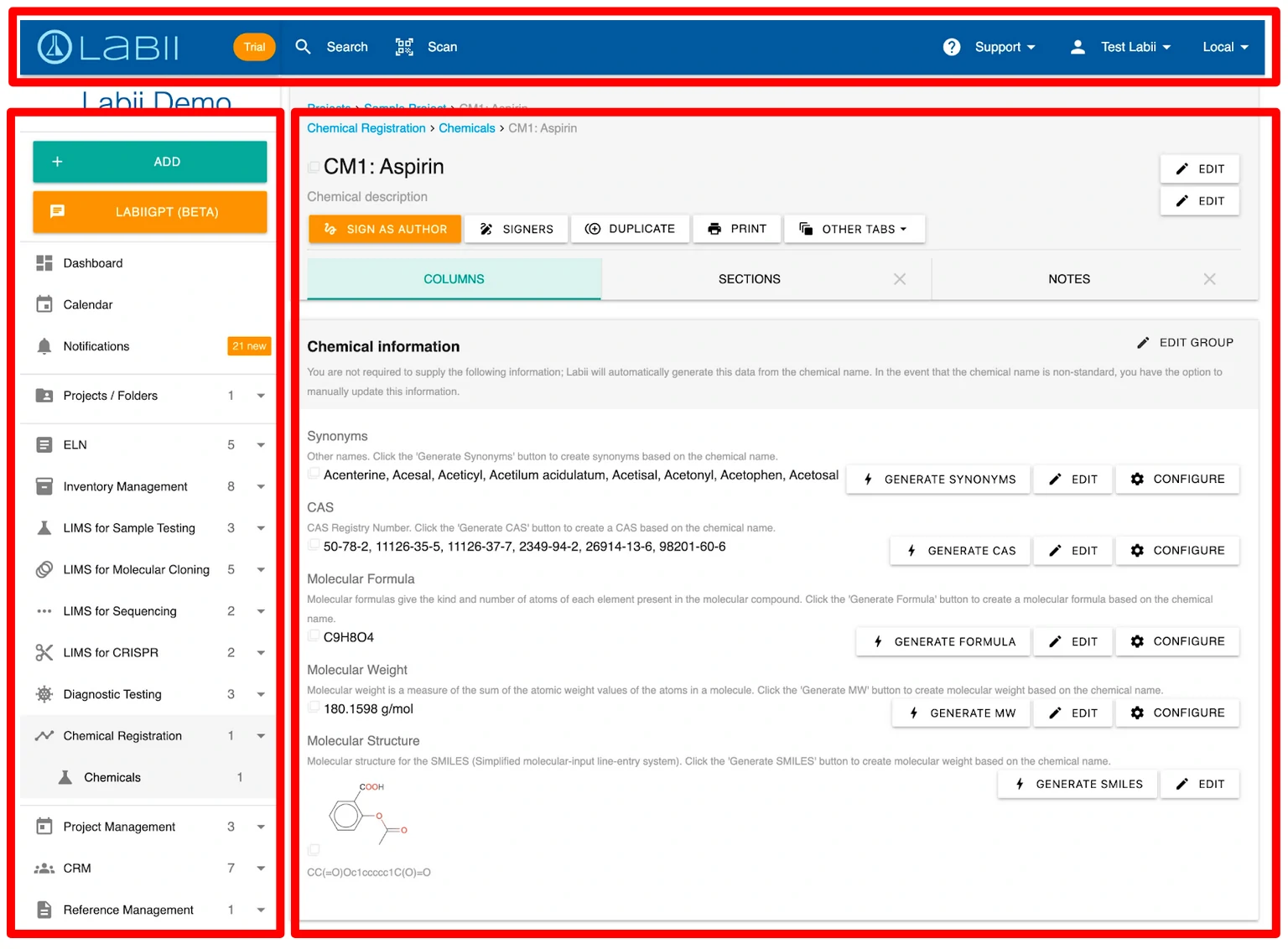 The Labii Side Menu is a dynamic navigation panel located on the left side of the interface, designed to adapt based on the type of page you are viewing. It provides essential context by displaying the type of data currently being accessed, along with breadcrumbs to help users understand their location within the platform. The side menu also features action buttons for performing relevant tasks, as well as quick access links to associated information, ensuring seamless navigation and efficient workflows. This adaptive design enhances usability by presenting only the most pertinent options and information for the user’s current task.