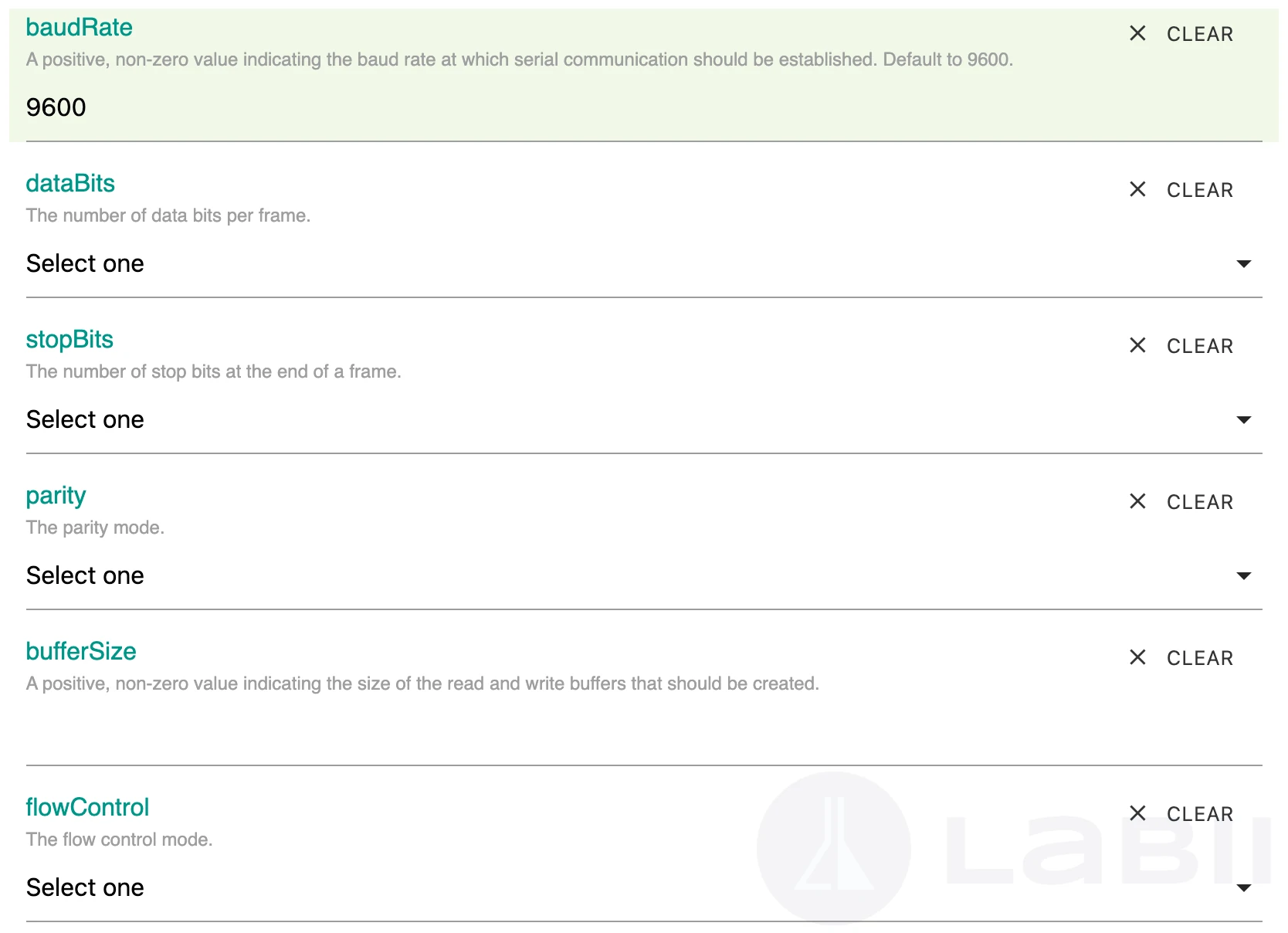 [Serial Port](https://www.labii.com/widgets/serial-port/) is a widget that can read data from a serial port and support RS-232 communication protocol. The widget has a user interface that allows the user to configure the serial port settings, such as baud rate and number of data bits, and display the incoming data in a readable format, and write data back to device.