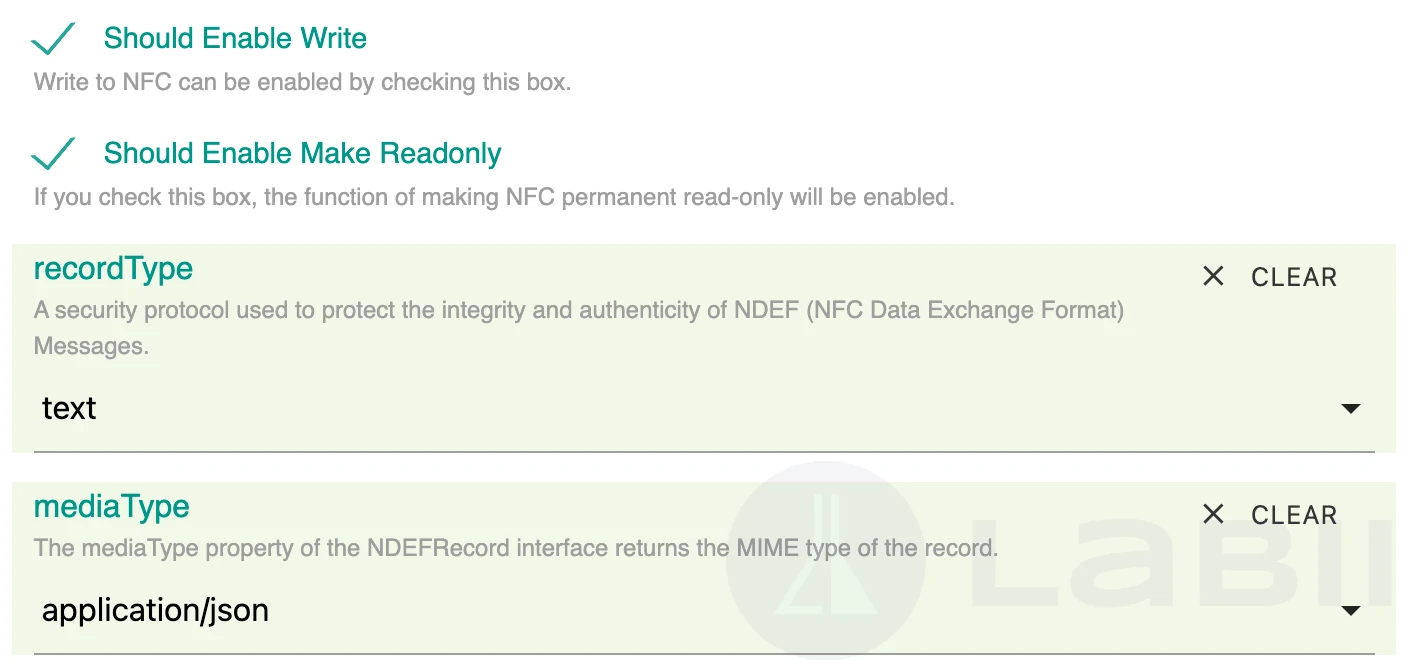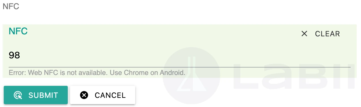 NFC (Near Field Communication) reader and writer widgets are user interface elements that allow users to interact with and control NFC-enabled devices. The NFC widget can be used to read data from an NFC tag or card, and write data to an NFC tag or card. The widget is currently only working in Android Chrome.